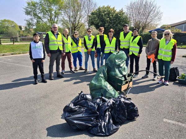 Nous étions une douzaine à participer au nettoyage des espaces communs du quartier du Pâtis. L'association SEVE, nous a prêté les pinces adaptées à la collecte des déchets.